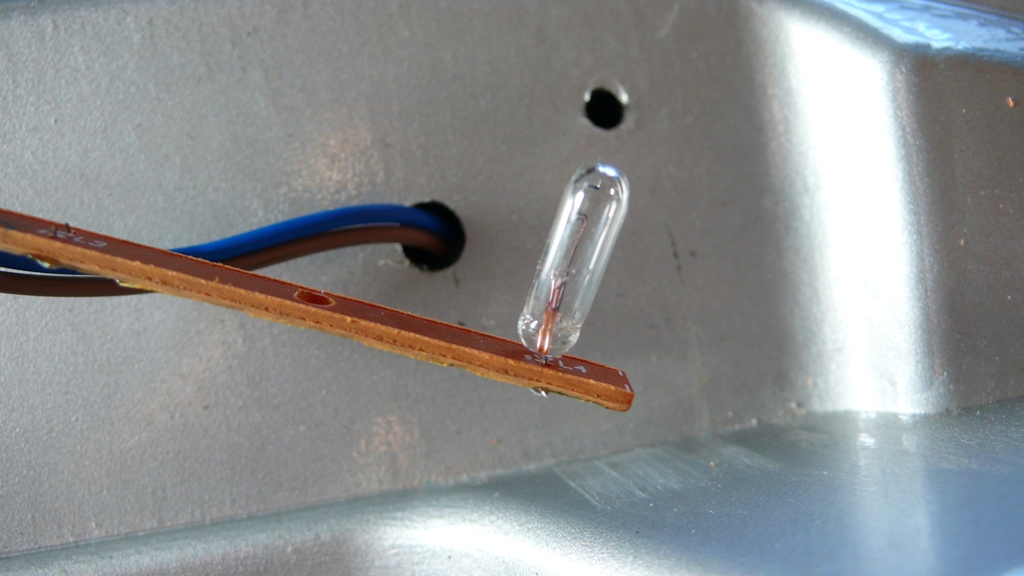 取り付けられていたムギ球。4つあるはずが2つしかない。手抜きされていた。