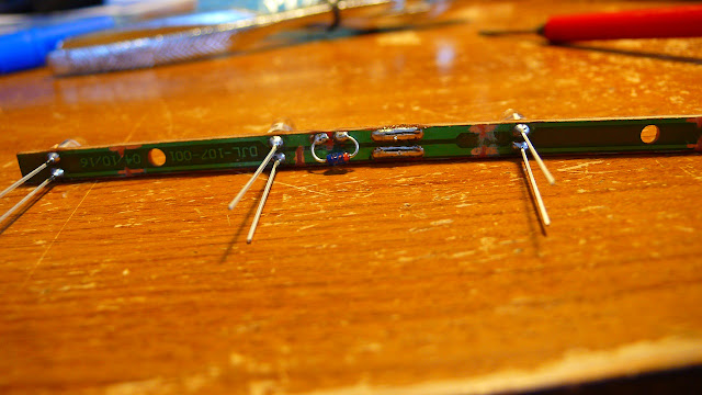 途中、プリントパターンを切り、CRDを直列にハンダ付けします。