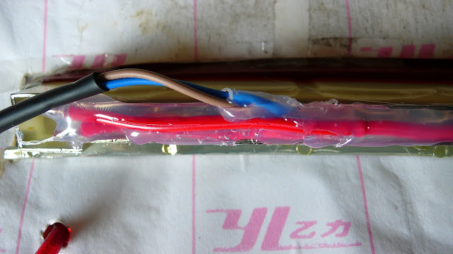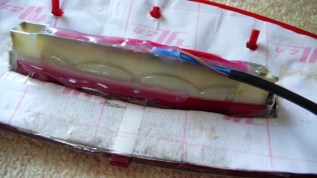 さらにストップランプの赤いパネルに取り付け、ホットボンドします。