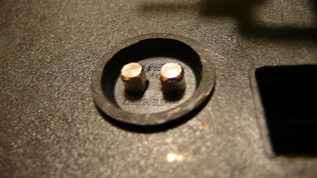 GIVIのベース裏にはストップランプ用電源の接点を取る付ける穴の型がモールドされているので、