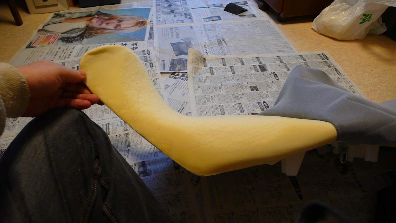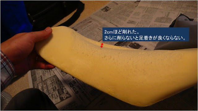 今日は2cmほど削って終了。スポンジのカスが出まくり、電気掃除機で吸いとってください。