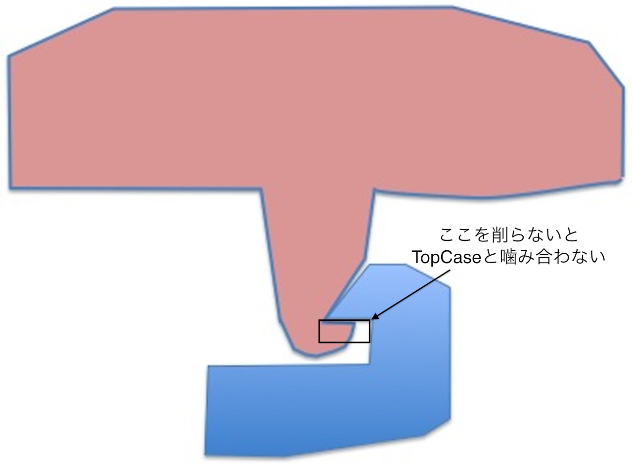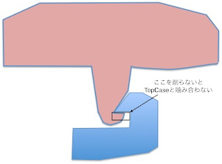 ちなみに、トップケース底面に付けた接点の周りの土手部分も削らないと、トップケースがロックできるほどの隙間になりません。