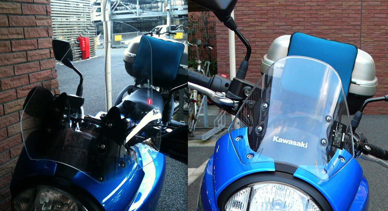 で、実際に取り付けてみました。標準のスクリーンと比較したかったのですが、うまい具合に同一のショットにはなっていません。お許しください。