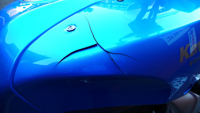 以前の投稿にも書きました。立ちゴケしたんです。10月に納車して、たった2ヶ月で、これです。まぁカウルだけならパーツを発注すれば済むんだけど。しかし、すぐパーツ発注も、ちと悔しいので、カウルのひび割れがこれ以上進まないように修理をしてみます。